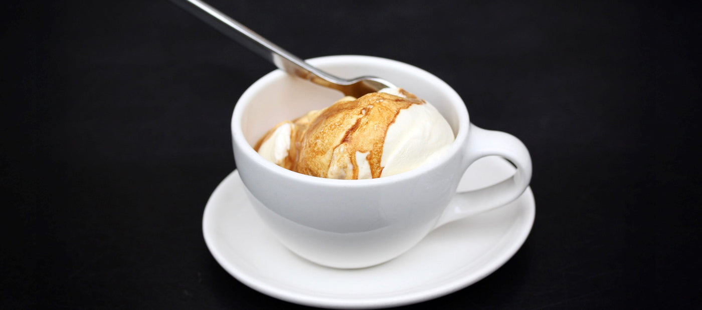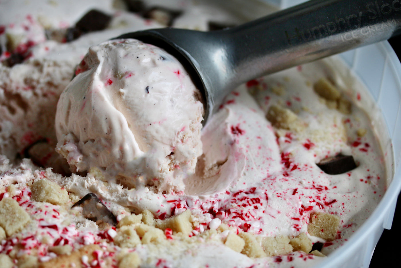 Tastes like Xmas. Two scoops Tahitian Vanilla, hot fudge and crushed peppermint pieces.
